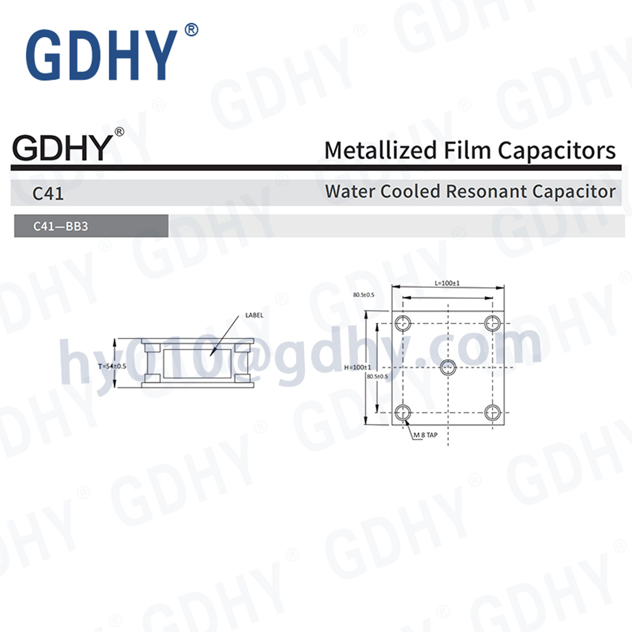 | DIMENSION: | 100*100*54MM | LIFE EXPECTANCY: | 100000h At UN And 70℃,30000h At Urms |